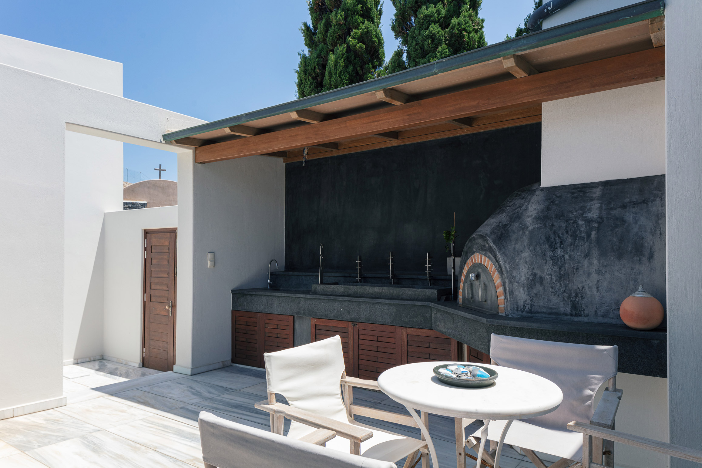 Ensconced within 5.000sqm abundance of space, a 60sqm private infinity pool, sensory lounge settings & BBQ facilities for culinary wonders this villa has been designed for family gatherings in mind. Wander between the plentiful seatings scattered around the gardens, swim at the outdoor swimming pool or simply sink into the pool and let all worries of life wash away as the moon rises in all its glory overhead. While fair weather days will mostly be spent poolside or grass between toes, evenings promise a sociable affair, from games room forays to al fresco suppers. An idyllic home for multi-generational escapes, younger members of the group are free to enjoy an indoor home cinema Netflix adventure, while there’s time aplenty for parents to enjoy crisp G&Ts under the pergola overlooking the sea. Wildlife watching, bracing morning walks and natural swimming are all optional, but well-deserved holiday break is guaranteed. The luxury villa also features and outdoor half-court basketball space, outdoor playground and covered parking space for up to 8 cars. A private Greek chapel is also available in the villa premises making it a unique villa for weddings.